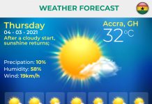 Ghana Weather forecast, alerts and UVB index, Thursday 04 March 2021