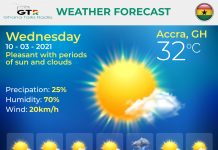Ghana Weather forecast, alerts and UVB index, Wednesday 10 March 2021