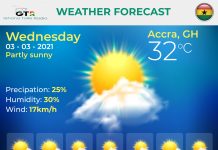 Ghana Weather forecast, alerts and UVB index, Wednesday 03 March 2021