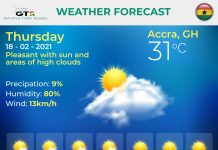 Ghana Weather forecast, alerts and UVB index, Thursday 18 February 2021