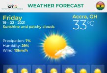 Ghana Weather forecast, alerts and UVB index, Friday 19 February 2021