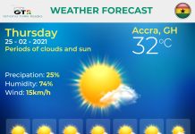 Ghana Weather forecast, alerts and UVB index, Thursday 25 February 2021