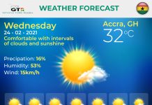 Ghana Weather forecast, alerts and UVB index, Wednesday 24 February 2021