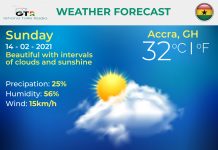 Ghana Weather forecast, alerts and UVB index, Sunday 14 February 2021