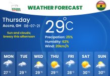 Ghana Weather forecast, alerts and UVB index, Thursday 08 July 2021