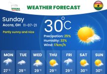 Ghana Weather forecast, alerts and UVB index, Sunday 11 July 2021
