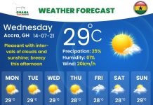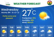 Ghana Weather forecast, alerts and UVB index, Wednesday 07 July 2021