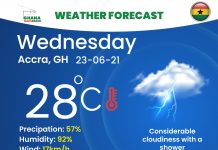 Ghana Weather forecast, alerts and UVB index, Wednesday 23 June 2021