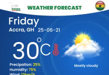 Ghana Weather forecast, alerts and UVB index, Friday 25 June 2021