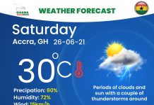 Ghana Weather forecast, alerts and UVB index, Saturday 26 June 2021