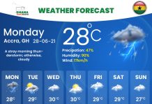 Ghana Weather forecast, alerts and UVB index, Monday 28 June 2021