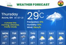 Ghana Weather forecast, alerts and UVB index, Thursday 01 July 2021