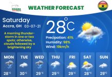 Ghana Weather forecast, alerts and UVB index, Saturday 03 July 2021