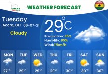 Ghana Weather forecast, alerts and UVB index, Tuesday 06 July 2021