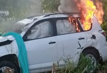 ‘Wedding car’ set ablaze after crushing two to death at Sefwi Afere