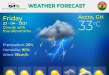Ghana Weather forecast, alerts and UVB index, Friday 23 April 2021