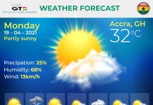 Ghana Weather forecast, alerts and UVB index, Monday 19 April 2021