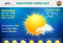 Ghana Weather forecast, alerts and UVB index, Sunday 18 April 2021
