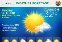 Ghana Weather forecast, alerts and UVB index, Friday 16 April 2021