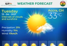 Ghana Weather forecast, alerts and UVB index, Tuesday 13 April 2021