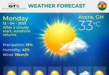 Ghana Weather forecast, alerts and UVB index, Monday 12 April 2021