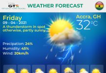 Ghana Weather forecast, alerts and UVB index, Friday 09 April 2021