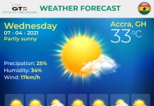 Ghana Weather forecast, alerts and UVB index, Wednesday 07 April 2021