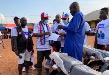 NPP fuels campaign in Ahafo Ano South-East with donation of motorbikes, clothes