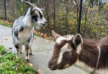 Two goats were spotted "chasing people" and were “detained for baaaaaadddd behaviour”, says police.