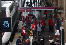 Service on three high-speed train lines in France was disrupted on Friday because of arson, the national railway company said, causing travel...