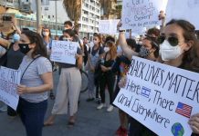 Over 200 demonstrators have protested outside the US diplomatic mission in Tel Aviv on Tuesday to decry the killing of George Floyd.