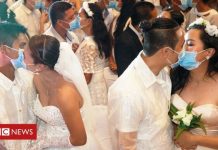 An annual mass wedding ceremony in the Philippines saw face masks and health checks included in the proceedings this year.