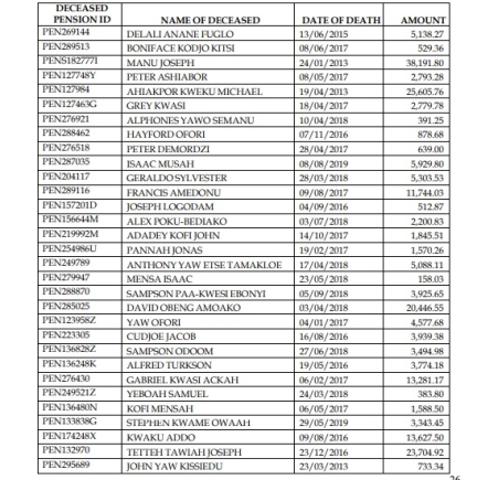 The 2022 Auditor-General’s report on Ministries, Departments and Agencies has raised concerns over pension payments to the sum of GH¢393,315.06 made to 59 dead people by the Controller and Accountant General and his director of the pensions unit.