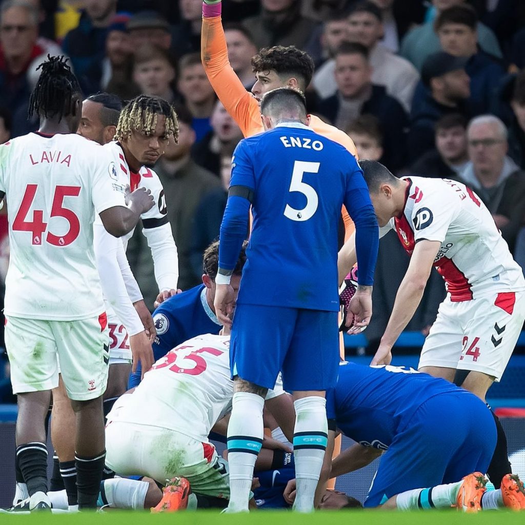 The Spaniard was inadvertently kicked in the head by Southampton’s Sekou Mara during the second half and was carried off the Stamford Bridge pitch on a stretcher.