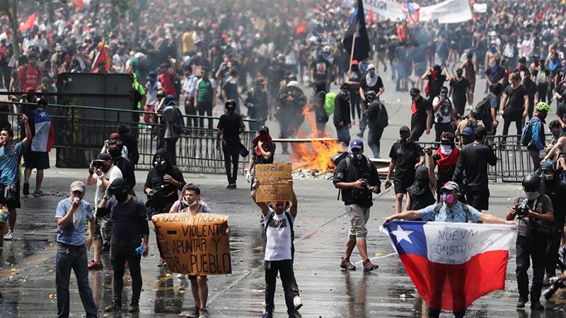 A protest in Chilean capital Santiago was marred by a controversial incident late on Friday when a teenage boy fell from a bridge into a river during police clashes, with demonstrators alleging security forces were to blame.