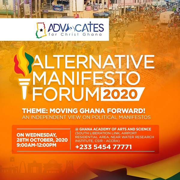 Dubbed the “Alternative Manifesto Forum (AMF) 2020” under the theme – “Moving Ghana Forward: An Independent View on Political Manifestos” the event will bring together key representatives of all the major political parties, civil society organizations, media and will be held at the Ghana Academy of Arts & Sciences, Accra on Wednesday 28th October 2020 9am.