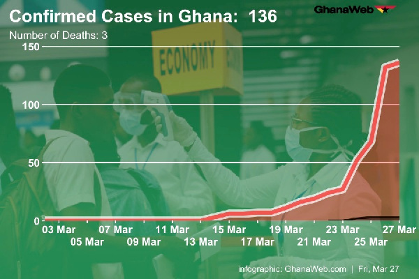 Majority of Ghana’s 136 confirmed cases are Ghanaians who returned home from affected countries.