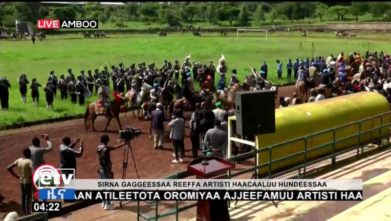 Pictures on national television show the funeral procession at a stadium in the singer’s hometown of Ambo, about 100km (62miles) west of the capital, Addis Ababa.