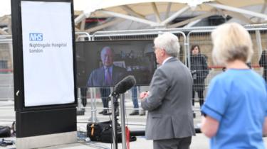 Also at the ceremony were Health Secretary Matt Hancock – who also recently came out of quarantine after having the virus – England’s chief nursing officer, Ruth May, and the head of NHS Nightingale, Prof Charles Knight.