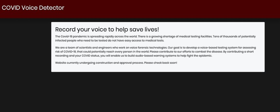 A notice on the Covid Voice Detector’s site says it is currently offline