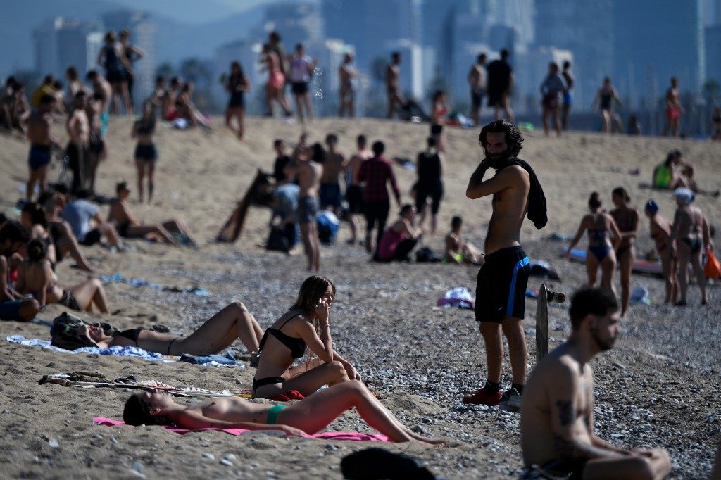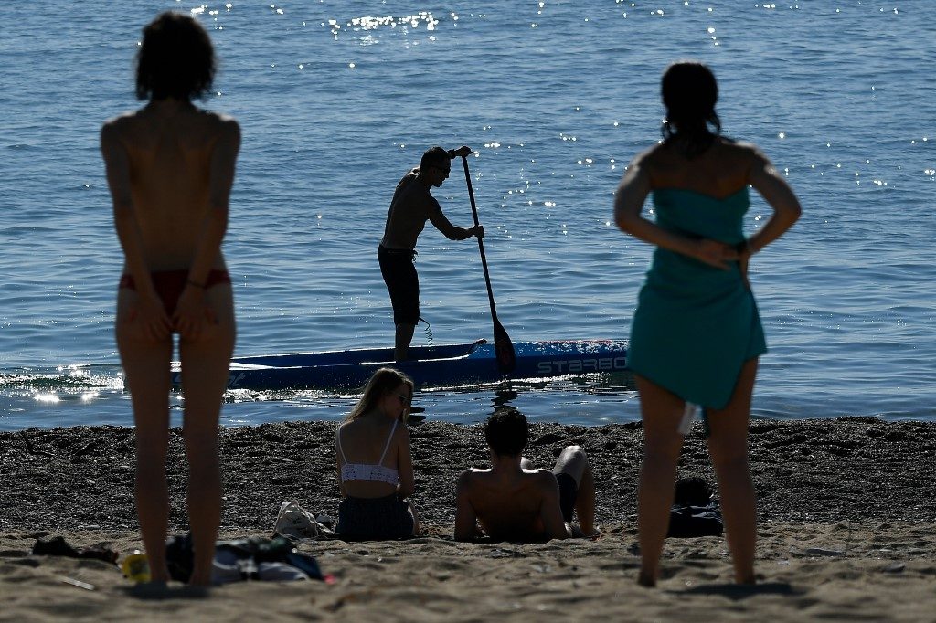 However, many people could be seen lying in the sun or having a coffee on the sand, an AFP correspondent said, with police largely turning a blind eye.
