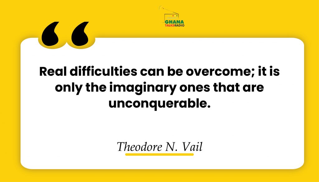 LifestyleInspirational Quotes Daily Inspirational Quote | GhanaTalksRadio.com | Dec 08 | 2022 8th December 2022 0 335 Share Facebook Twitter WhatsApp Linkedin Pinterest Telegram Viber Real difficulties can be overcome; it is only the imaginary ones that are unconquerable.