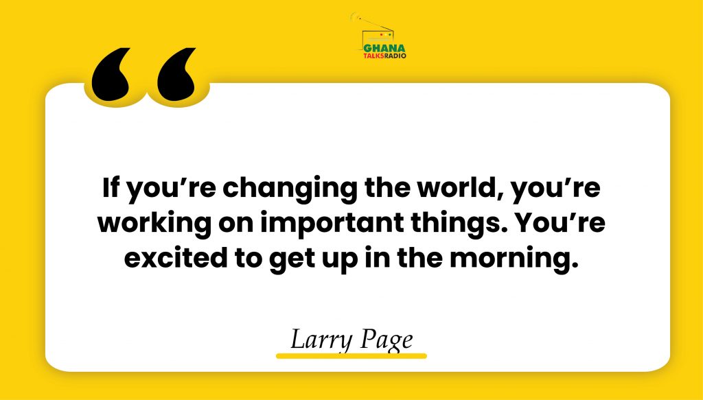 LifestyleInspirational Quotes Daily Inspirational Quote | GhanaTalksRadio.com | Jan 06 | 2023 6th January 2023 0 349 Share Facebook Twitter WhatsApp Linkedin Pinterest Telegram Viber “If you’re changing the world, you’re working on important things. You’re excited to get up in the morning.”