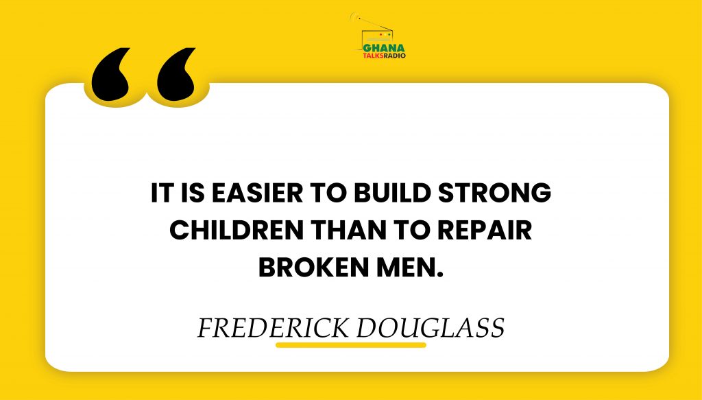 LifestyleInspirational Quotes Daily Inspirational Quote | GhanaTalksRadio.com | Jul 13 | 2023 13th July 2023 0 271 Share Facebook Twitter WhatsApp Linkedin Pinterest Telegram Viber IT IS EASIER TO BUILD STRONG CHILDREN THAN TO REPAIR BROKEN MEN. ~Frederick Douglass