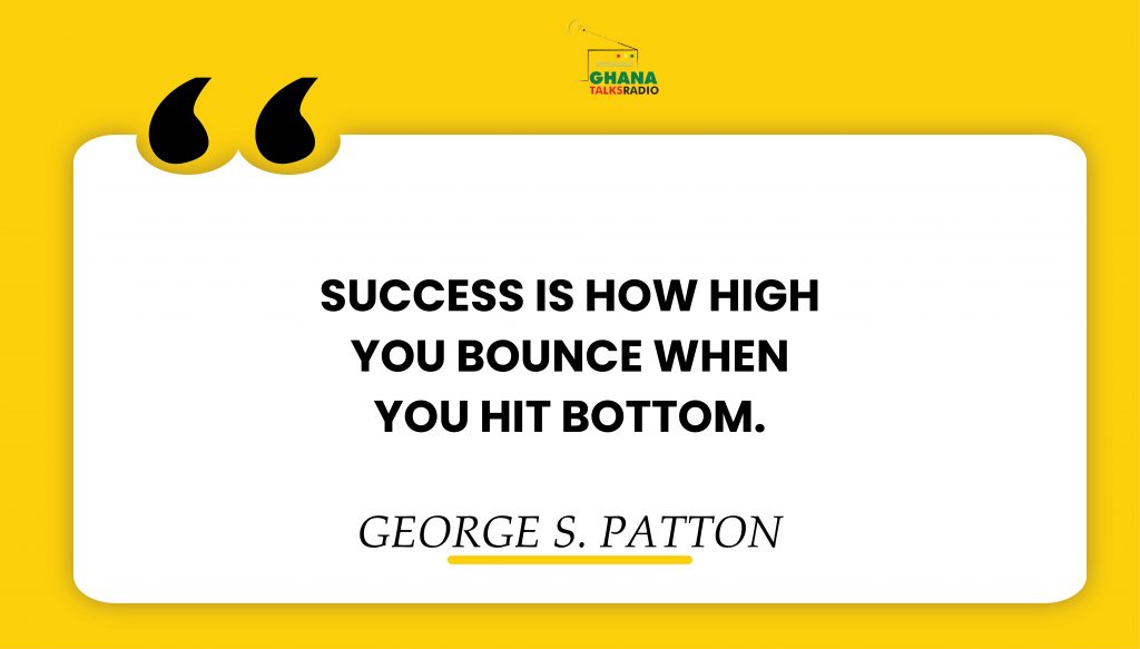LifestyleInspirational Quotes Daily Inspirational Quote | GhanaTalksRadio.com | Jun 16 | 2023 16th June 2023 0 260 Share Facebook Twitter WhatsApp Linkedin Pinterest Telegram Viber SUCCESS IS HOW HIGH YOU BOUNCE WHEN YOU HIT BOTTOM.