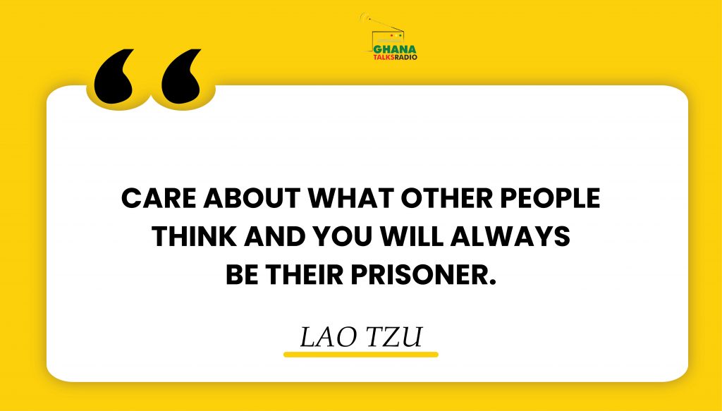 LifestyleInspirational Quotes Daily Inspirational Quote | GhanaTalksRadio.com | May 18 | 2023 18th May 2023 0 293 Share Facebook Twitter WhatsApp Linkedin Pinterest Telegram Viber CARE ABOUT WHAT OTHER PEOPLE THINK AND YOU WILL ALWAYS BE THEIR PRISONER. ~LAO TZU