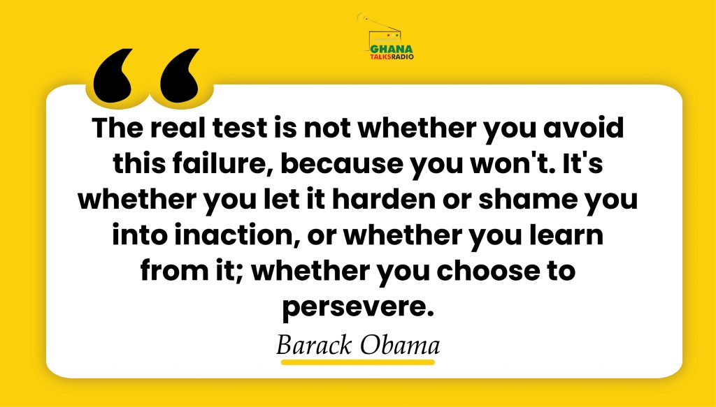 “The real test is not whether you avoid this failure, because you won’t. It’s whether you let it harden or shame you into inaction, or whether you learn from it; whether you choose to persevere.” ~Barack Obama