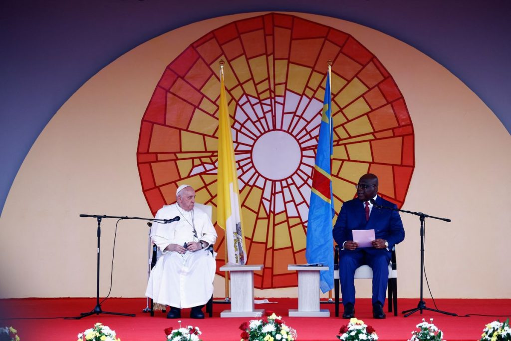 “As well as armed militias, foreign powers hungry for the minerals in our soil commit, with the direct and cowardly support of our neighbour Rwanda, cruel atrocities,” Congolese President Felix Tshisekedi said, speaking just before the pope on the same stage on a hot, muggy afternoon.