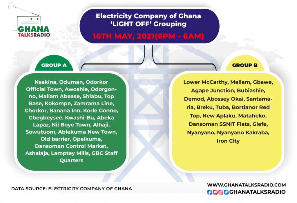 NewsNational DUMSOR UPDATE: See areas to be affected tomorrow – Sunday, 16th May 15th May 2021 0 697 Share Facebook Twitter WhatsApp Linkedin Pinterest Telegram Viber READ MORE: https://wordpress.ghanatalksradio.com/ecg-to-carry-out-mandatory-maintenance-as-accra-set-to-suffer-dumsor-see-timeline/