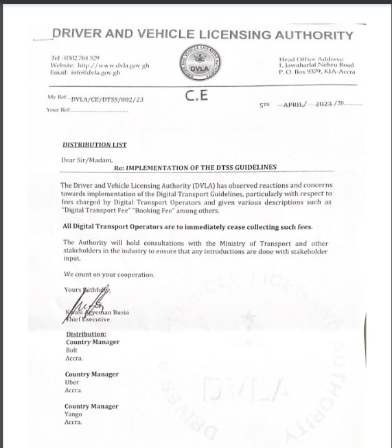 “Particularly with respect to fees charged by Digital Transport Operators and given various descriptions such as Digital Transport Fee, Booking Fee among others,” the statement issued by CEO Kwasi Agyeman Busia noted.